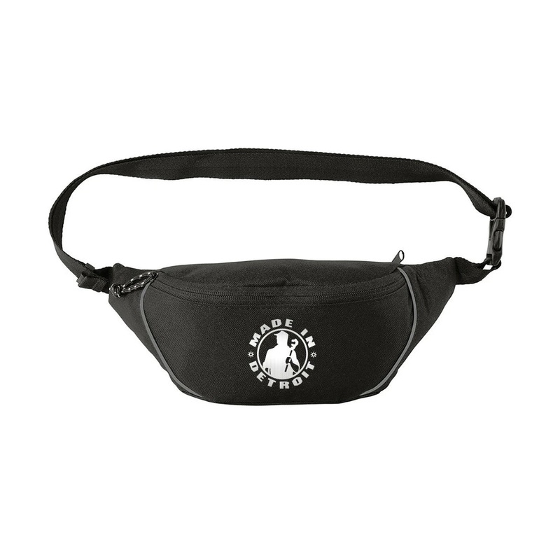 Designed to be simple and compact, the Made in Detroit Fanny Pack will sit comfortably on your hip or across your body. There are two zippered pockets that are great for storing grab and go essentials. Reflective Trim Detail Reflective Made in Detroit on F