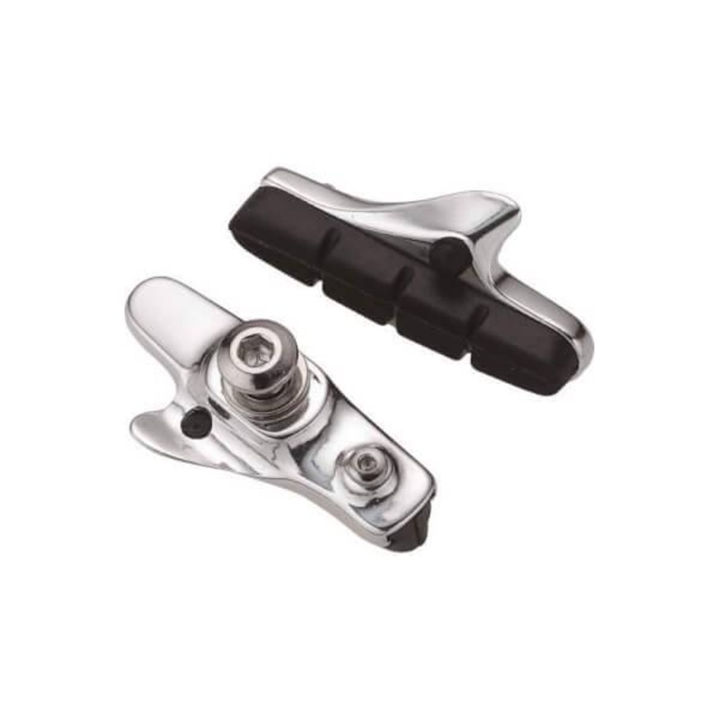 BS-600Road racing brake shoes, cartridgeShimano typeAluminium pad holderSilver finishLenght: 55 mm.