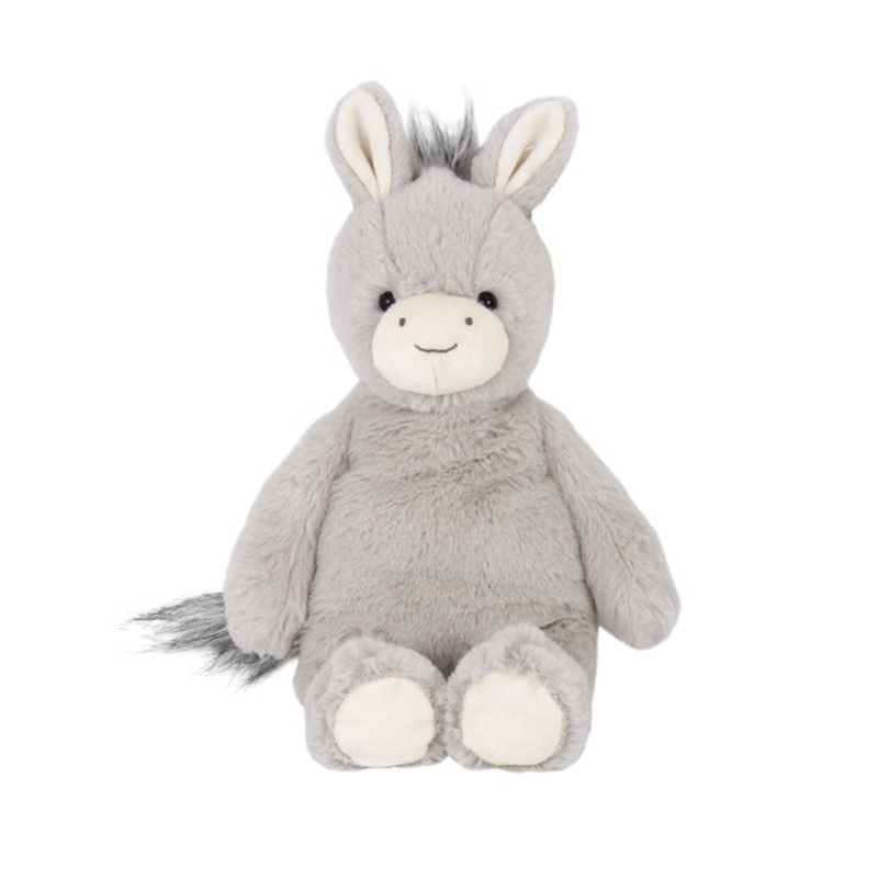 Moses the donkey plush toy makes his grand entrance with a cute-as-can-be face, ultra-soft grey fur and swishy tail. Floppy, go-anywhere feet ensure this donkey plush toy will have his share of adventuresfrom playtime to movie time to bedtime.