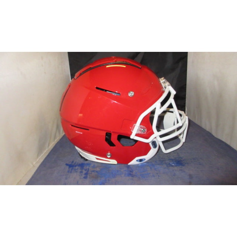 New Schutt 2025 F7 LX1 Youth Football Helmet Matte Red Size Medium – jawpads and chin strap behind counter