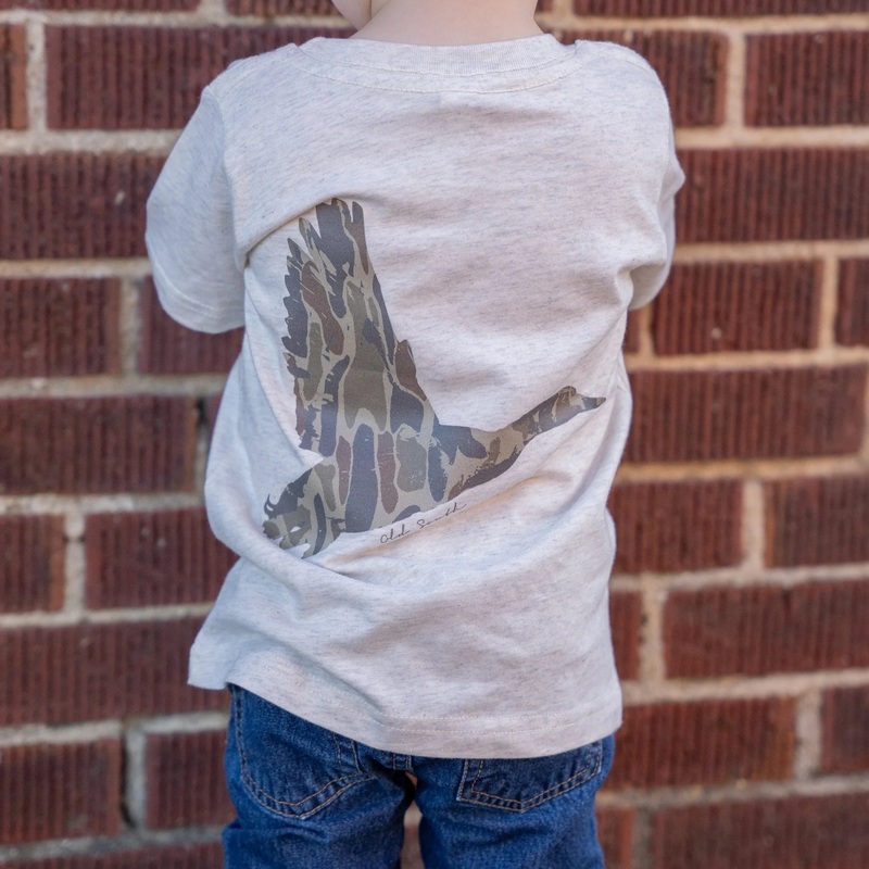 Your little one will be the coolest duckling in the pond with our Duck Wings camo shirt. Featuring our custom osland camo pattern, this short-sleeved shirt is perfect for playtime in the thicket. Style and function combined!100% Cotton CombedRing-spunShort