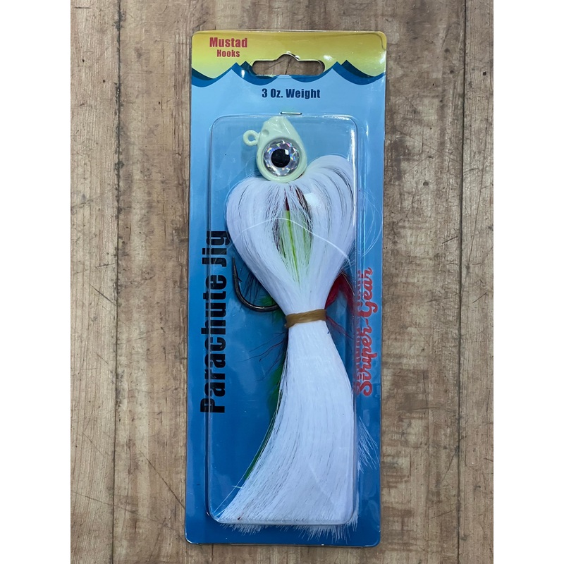 Striper Gear 3oz 7 Parachute Jigs are used by many commercial fishermen. Use with wireline or lead-core and let out 100 feet depending on the line. The lure must go along and skip across the bottom. It doesnt work straight down like a jig! It must have a lot of line out! Hand jig or use with a heavy pole giving a good jig every 4-6 seconds. Its not a sport fishing type of lure, its a catching a lot of big fish lure. Powered by a Mustad 7/0 hook 4X.