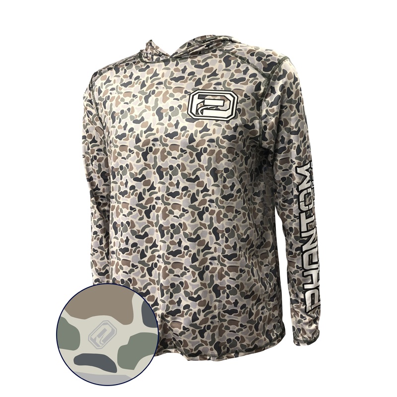 Our very own Phantom camo pattern in a long sleeve, hooded performance shirt!These new performance shirts are made of new materials that look and feel great!UPF50Moisture WickingPhantom P logo hidden in camo pattern