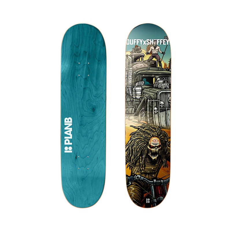 PLAN B SUPERCHARGED DUFFY X SHEFFEY 8.25" SKATEBOARD DECKWidth: 8.25* The color of the top ply may vary. * The wheelbase is taken from the center of the inner bolts of the truck.