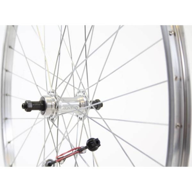 This wheel has a loss hub (quick release) and is suitable for a 5, 6, 7, 8, and 9 fold free-wheel or screw-on tooth wheel.