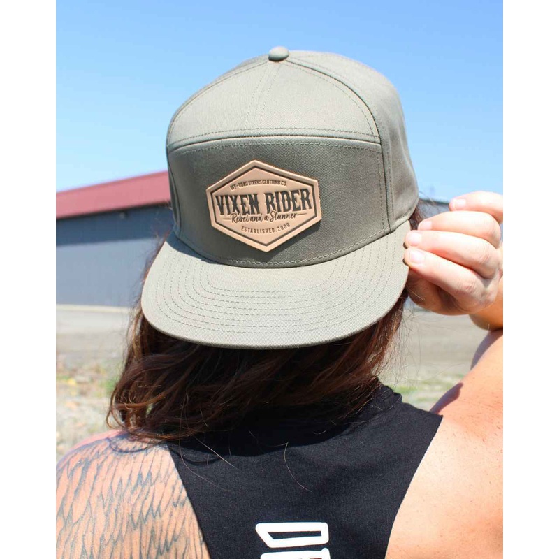 Be a Rebel and Stunner in this7-panel mid-profile flat bill snapback, olive in color featuring our new real leather Rebel and a Stunner patch.100% Cotton Front and BackStructured firm front panel, SnapbackFit Guide - One Size Fits Most