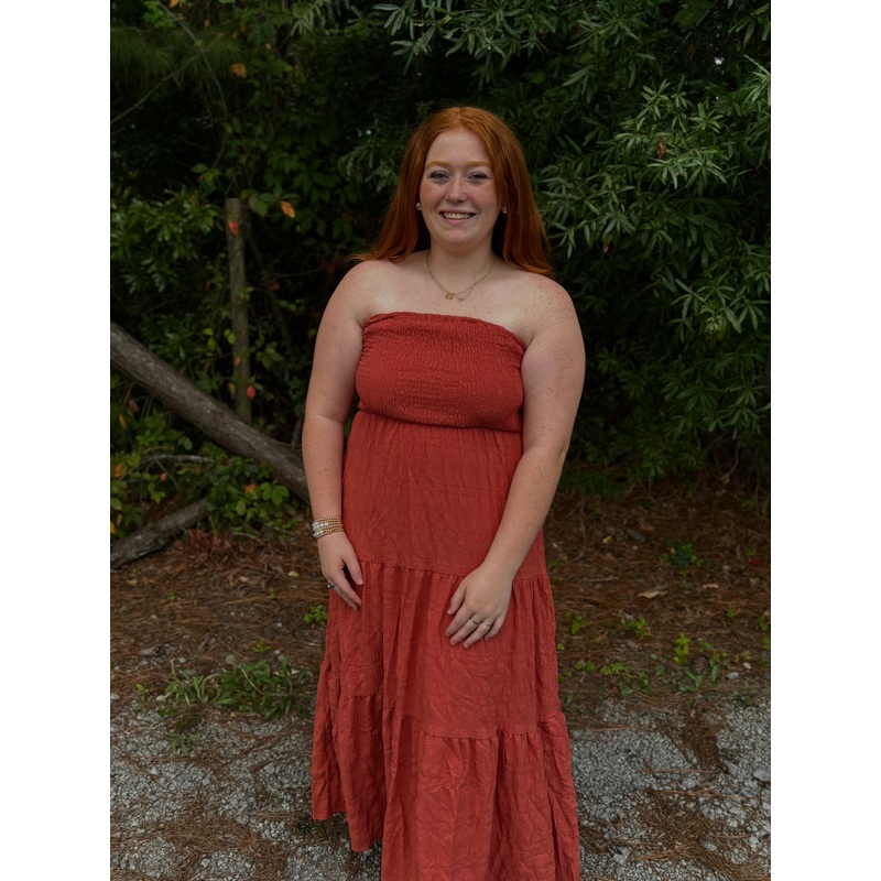 Be the first to review “Ruffle Hem Brick Red Tube Top Long Dress”