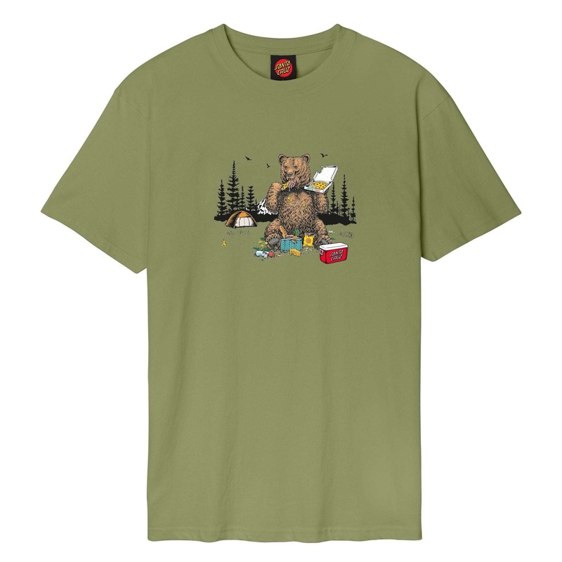 The Santa Cruz Braun Pizza Bear T-Shirt in Iguana is a playful yet bold addition to any skate wardrobe. Featuring illustrated artwork inspired by Tom Knox, this tee blends Santa Cruz's skate heritage with a fun, laid-back vibe. Made from soft, breathable f