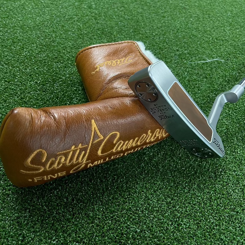 With its copper-coloured paintfill accents, stepless steel shaft, and rich, luxurious leather griphand stitched with matching copper-coloured thread no lessthe Button Back Newport 2 has a single sight line in the flange and a solitary Scotty engraving up the neck.