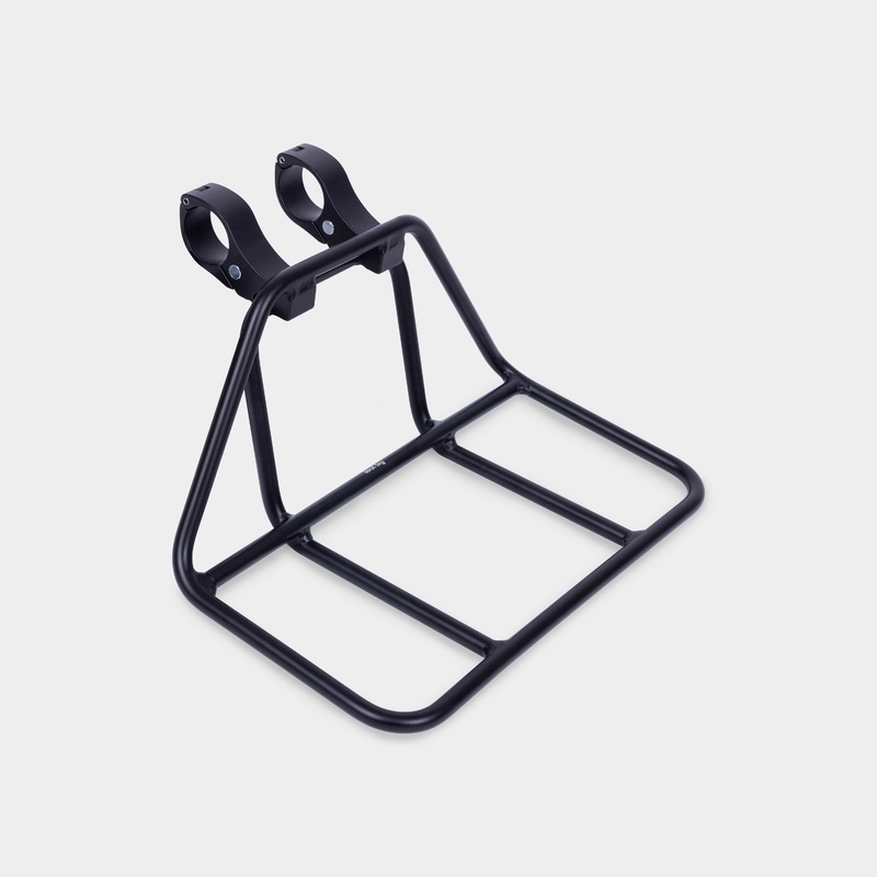 ExoLoader is your ticket to load up front and ride well-balanced. Inspired by the classic pizza rack design, this wide, flat platform opens a basket of bikepacking setups from tents and bivvies to crates of trail snacks and roadside rhubarb. Whether you're