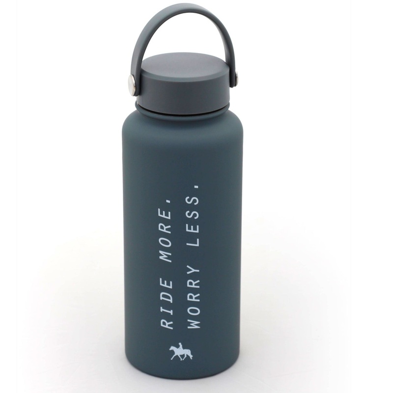 A big, beautiful, insulated water bottle to be at your side no mater the humidex rating! With a large mouth for lots of ice cubes, 1000ml/32oz capacity, and double walled vacuum insulated construction, this bottle is ready to take on whatever you have planned for the day. Features white “Ride More, Worry Less” design and available in a wide assortment of fashionable matte soft-touch colours.