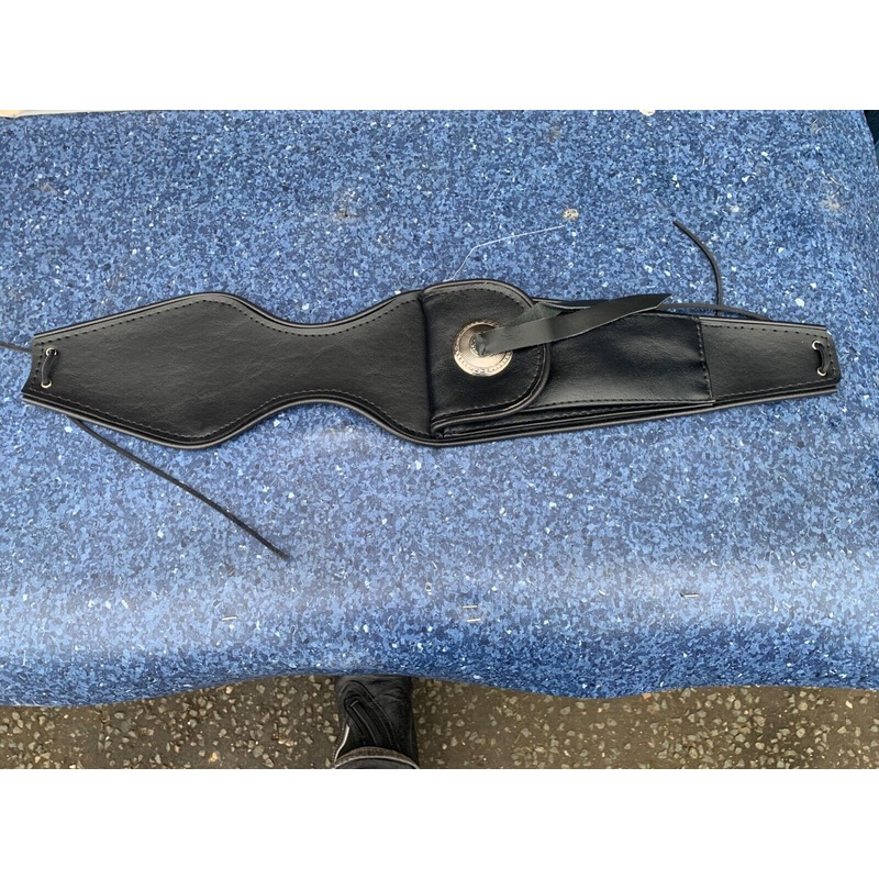 Yamaha Virago XV750 XV1000 XV1100 tank protector. Contoured to hug the tank and felt-backed to protect the paint, Tank Bibs feature beaded edges for unique style and utilize stock mounts for easy installation. with studs and a concho. Decorative studs are chrome-plated brass, Conchos are custom made from heavy die-cast zinc rather than thin stamping, and are hand-tied with genuine leather straps. Pouch Tank Bibs offer a custom look with sensible convenience and feature a soft, fabric-lined interior. The flap is easy to open and closes tightly via hook and loop.