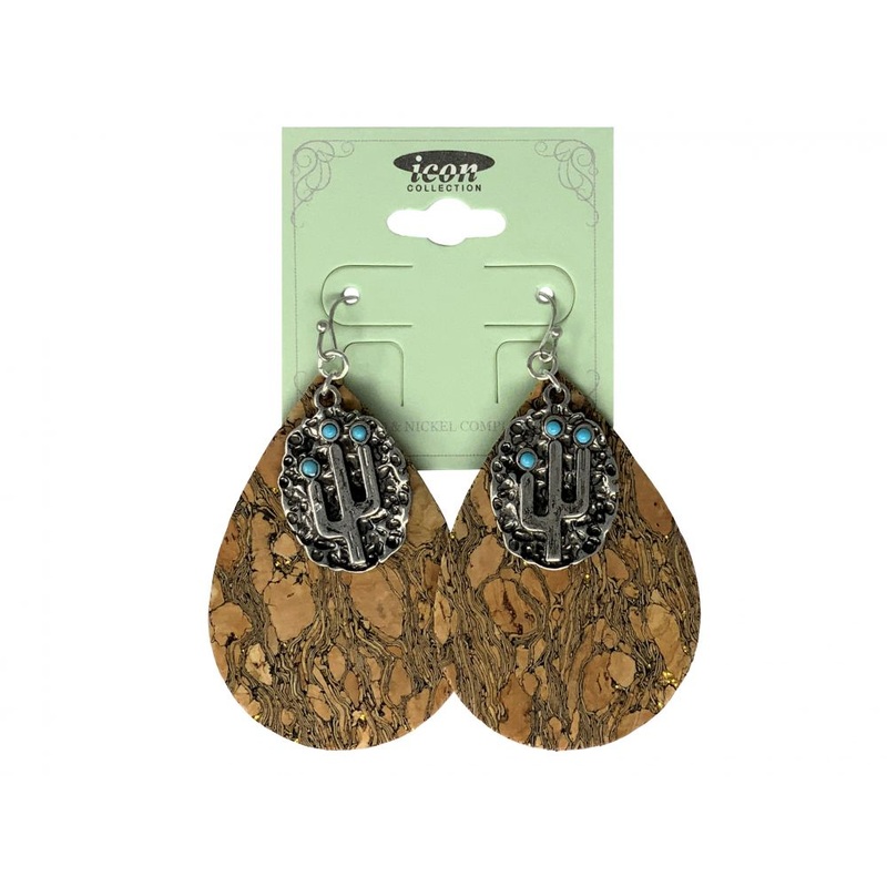 Teardrop cork earrings with hook back and cactus accent charm.Lead and Nickel Compliant.FINALCLEARANCEThis is a CloseoutDiscontinued item. Sizes, colors and quantities are limited.No refundsNo exchanges on CloseoutDiscontinued items. Products are sold as i