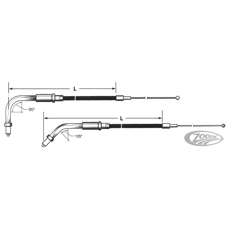 Note: Throttle cables are measured as casing length including the cable adjuster at the handlebar side and +-1/2″ (13mm) Lengths for idle cables are given as “matching with throttle cable length” and may be different, especially for models originally supplied with a fairing “Cruise Control” idle cables feature the roll-off switch as used on most OEM cables