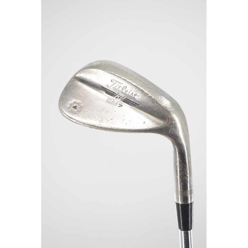 Hand/Gender: Right-Handed/Men'sStyle: PrecisionBrand: TitleistModel: Vokey SM7 Brushed SteelClub Type: WedgeLoft: 54 DegreesBounce: 8 DegreesGrind: MFlex: Wedge FlexLength: 35"Shaft: Stock Vokey Design (Steel)Grip: Golf Pride Tour Wrap (Midsize)Condition: