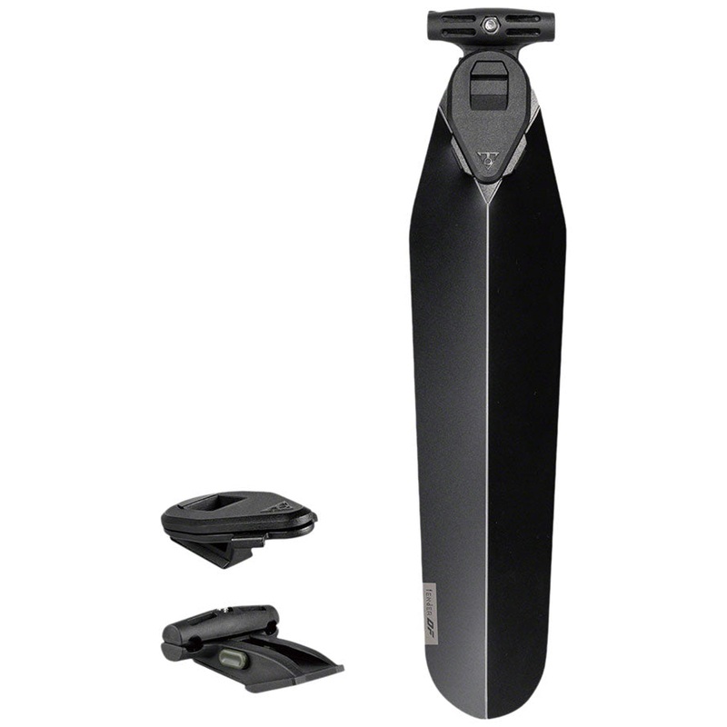 Topeak FlashFender DF Fender - Black. Durable polypropylene fender is ultralight stylish and simple to slide and click then ready to go when wet weather arrives. Included Duo Fixer allows fast and easy tool-free mounting and removal and provides dual use w