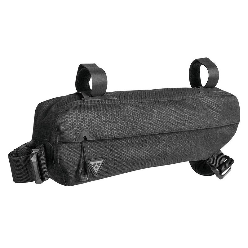 Topeak MidLoader Frame Mount Bag – 3L Black. The Topeak MidLoader carries the heaviest items for your bike adventure. Constructed of lightweight highly water resistant and durable materials it mounts and removes quickly with hook and loop fasteners. Two water resistant zippered openings provide easy access to all your gear from either side.