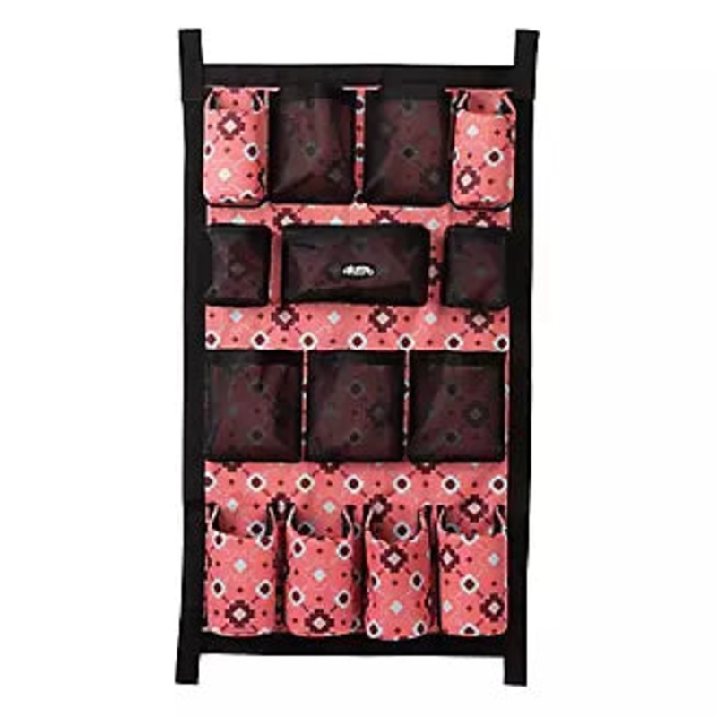 Organize your grooming essentials with the Weaver Leather Trailer Grooming Bag. Constructed of 600D polyester, this bag conveniently hangs wherever you need it. With a variety of storage options including open and zippered mesh pockets and padded compartments, it is perfect for storing brushes, combs, bottles, cans, and more. Measures 23″W x 39″H
