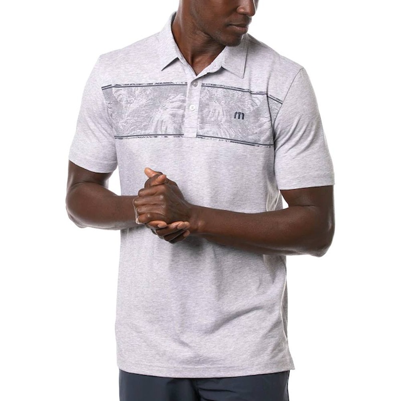 TravisMathew Make Camp Golf PoloTheres nothing better than a good polo, and the MAKE CAMP polo is better than good. With an elevated, textured, floral chest stripe, this polo deserves a spot on your weekly rotationDetailsPrinted logo on the back yokeBuilt-