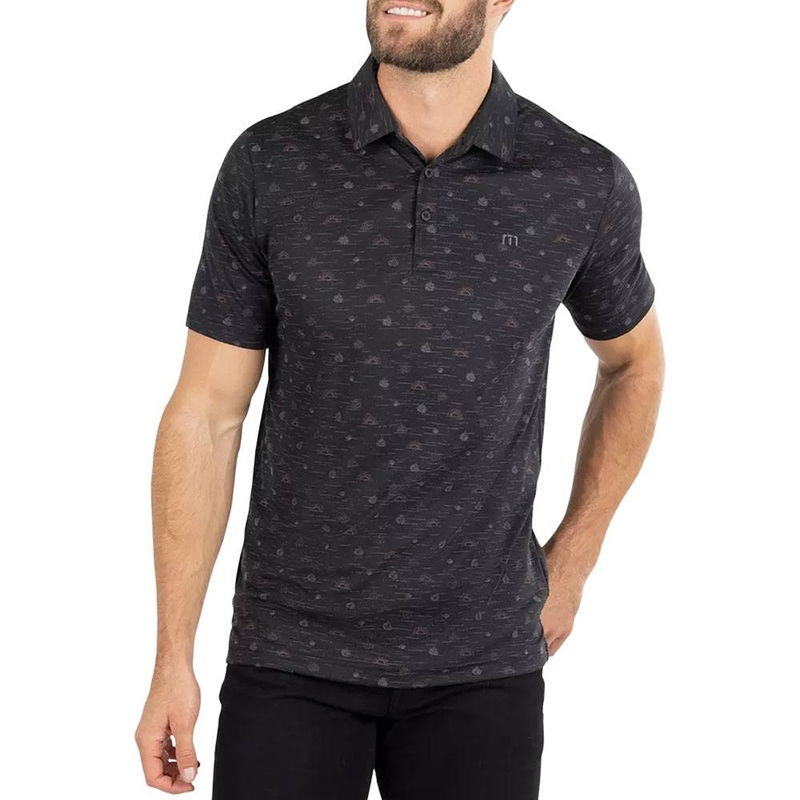 TravisMathew Modesto Golf PoloFeatures Regular fit golf polo 3-button placket closure Classic polo collar Short sleeves Features a fun, mid-sized print with a nep textured background Embroidered TravisMathew logo at left chestSpecificationFabricFitMSRPN/AR