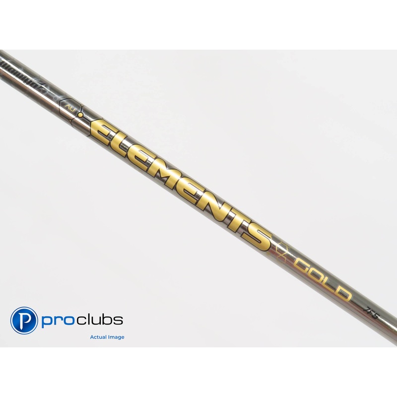 Brand: UST Mamiya Model: Elements Gold Adapter: None Shaft Length: 40.5" Shaft Material: Graphite Flex: Extra-Stiff Grip: NONE Shaft Weight: 70g RANGE Launch: Low Torque: Tip Diameter: .335" Condition Notes: Good condition with some light marks to the pain
