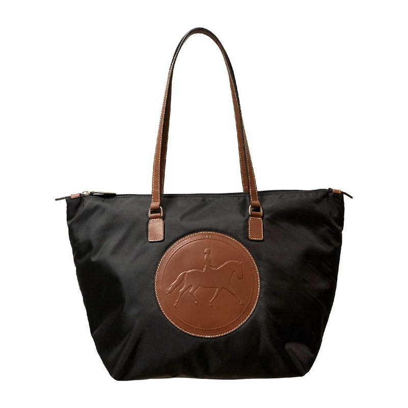 We love this Devon Day Bag a perfect blend of style and function inspired by the iconic Devon horse show grounds. Crafted from durable 900d black nylon with rich full-grain leather accents, it offers lasting quality and elegance. The oil-rubbed leather shoulder straps ensure comfortable wear with a convenient 12 drop. Inside, find a refined layout with a private zip pocket, embossed logo patch, and two open pockets to keep essentials organized. Available in Black/Chestnut or Black/Black, with customizable embossing options to match your passion for Dressage or other equestrian disciplines.