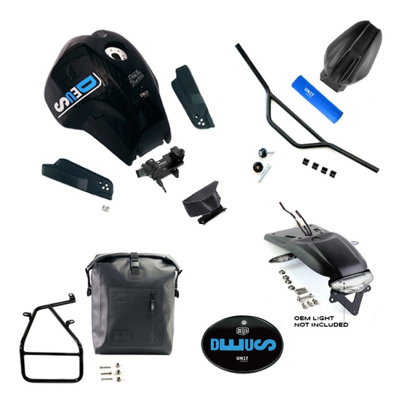 Deus Ex Machina collaboration with Unit Garage for the R NineTNineT Paris Dakar fuel tank - 22.5 litre capacity, TV approvedEnduro-style front fenderEnduro rear fender and plate holderErgo handlebar same height as stock, but with more backsweep for comfort