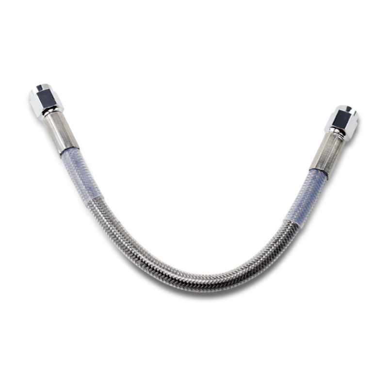 Universal Brake Line - Clear - 9" Top-quality clear vinyl-coated stainless steel/braided brake lineFeature chrome-plated AN-3 endsMade in the U.S.A.