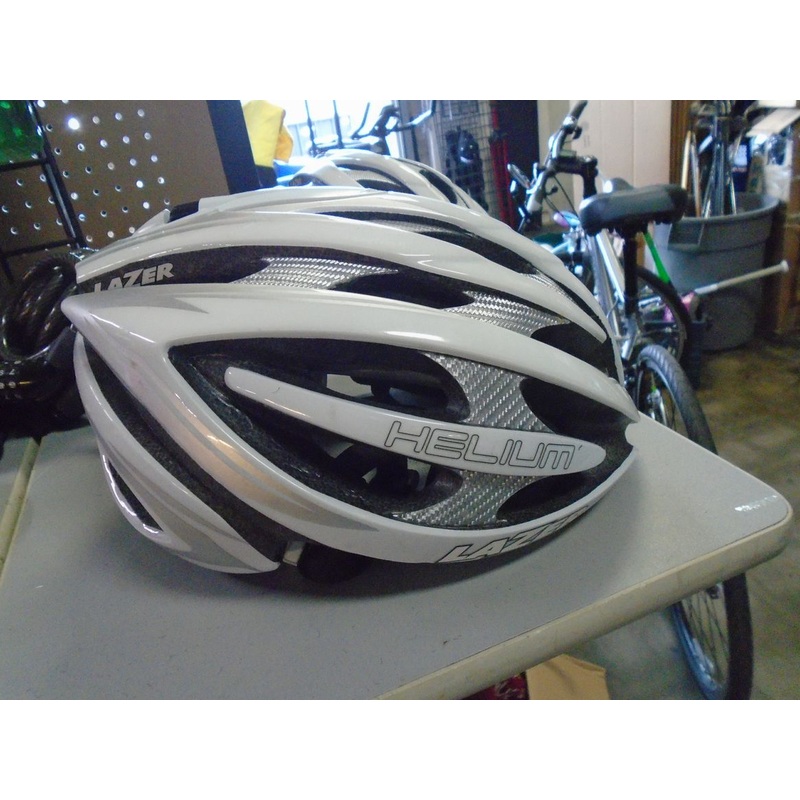 Used Lazer Helium Size M/L Bicycle HelmetMODEL = HeliumSize = M/LColor = SILVERBrand = Lazer Item Number: 54443-3 Item ID: 183662 Category: HELMETS