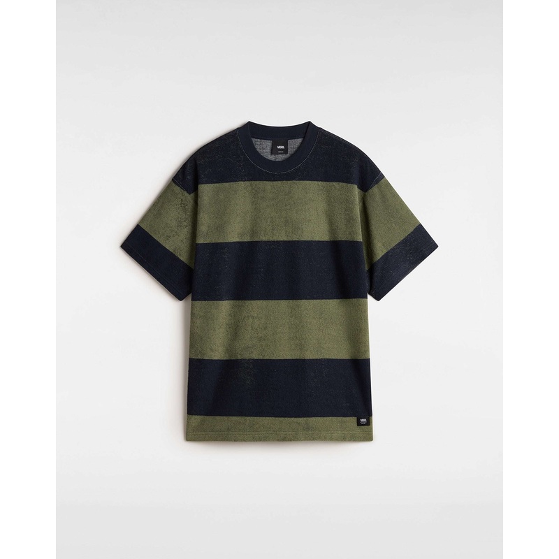 Bold color blocked stripes make the Bergman Stripe T-Shirt stand out, while terry cloth fabrication makes it super comfortable. It's finished with a woven Vans label at the hem.Crewneck shirt for a classic look short sleeves for a casual, everydayTerry clo