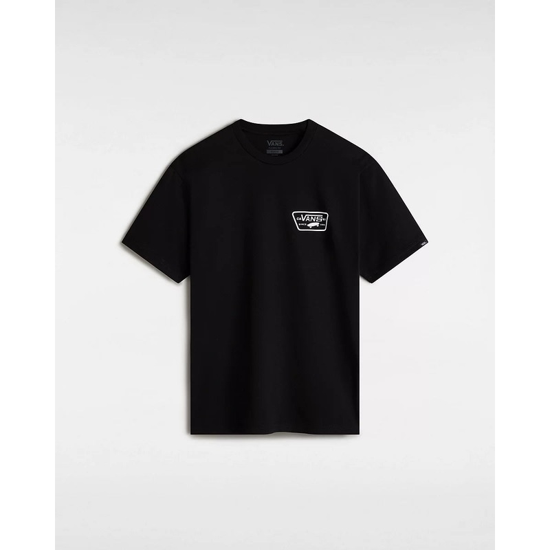 Upgrade your casual wardrobe with the Vans Full Patch Back T-Shirt. This classic black and white t-shirt features a crew neck and short sleeves for a comfortable fit. The iconic Vans logo is prominently displayed on the left chest and back, adding a touch