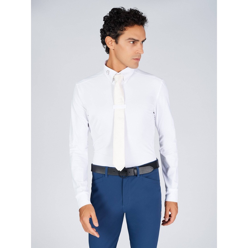 Mens long-sleeved competition shirt. Tenno is a classic piece: a shirt fastened by a 3 button row on the front and a tie strap. Thelogo is embroidered on the right side of the collar, steady by two hidden snap buttons. Bi-elastic jersey to ensure comfortab