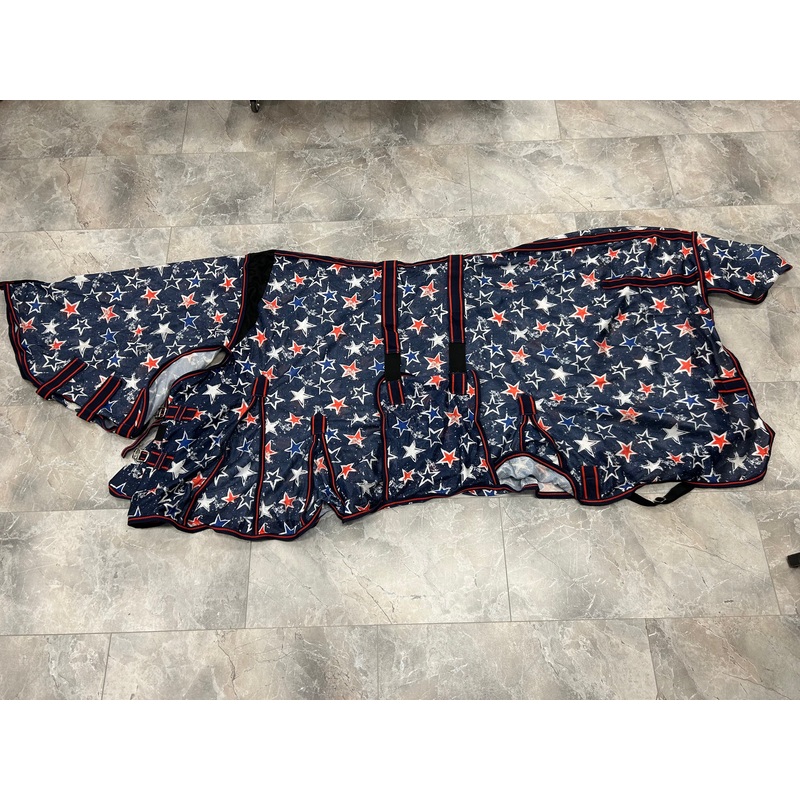 Deze hoogwaardige vliegendeken met vaste hals biedt je paard volledige bescherming en optimaal comfort tijdens warme, insectenrijke dagen.De deken is uitgerust met een vaste hals, een stevige voorsluiting, buiksingels, bilkoorden en een staartriem, wat zor