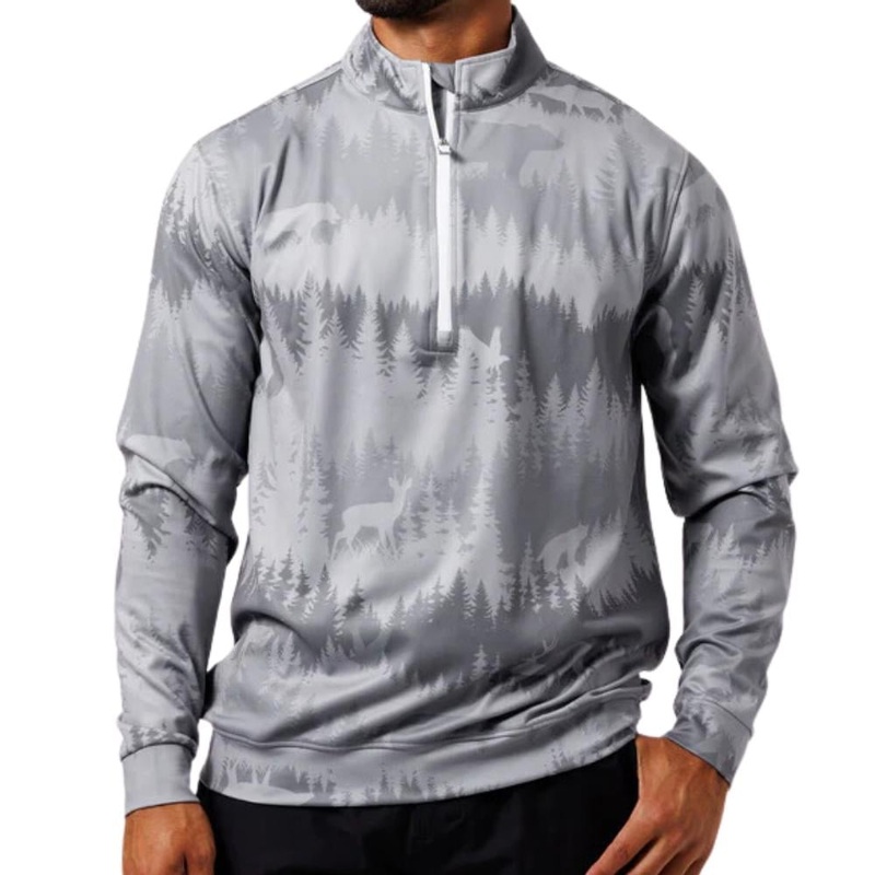 Theres woods, and then theres NORTHwoods. Dense pines stretching up to the sky, majestic beasts roaming the forest floor below. This zero restrictions performance-fit quarter zip is ready and waiting for you to answer the call of the wild (you already know