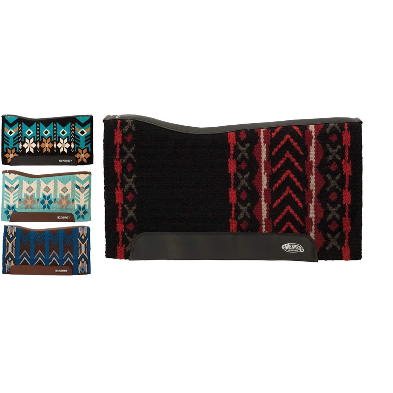 Weaver Leather Synergy Contoured Performance Saddle Pad 33" L x 38" WWeaver Leather Synergy Saddle Pad Contoured EVA Sport Foam Inserts100% New Zealand Wool Merino Wool Fleece Bottom Premium Oiled Top Grain Wear Leathers. This Weaver Leather Pad is contour