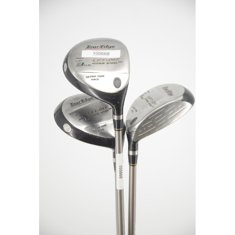 Hand/Gender: Right-Handed/Women'sStyle: Forgiveness Brand: Tour EdgeModel: Lift-OffClub Type: Wood SetClub Number: 3W, 5W, 7WFlex: Women's FlexLength: 42.5", 41.5", 41.25"Shaft: Tour Edge Lift-Off (Graphite)Grip: Golf Pride Sofftie (Standard)Headcover: Not