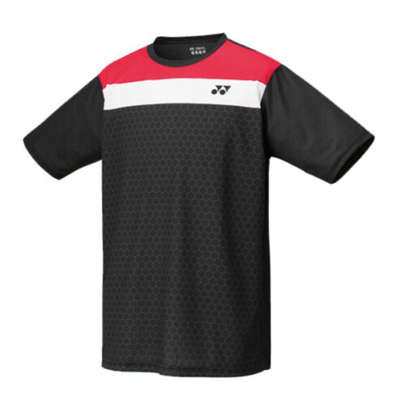 Yonex 16433 Tournament Style Men's T-shirt (Black)Yonex 16433 tournament-style men's t-shirt is a worthy investment for badminton athletes. With 100% polyester fabric, the t-shirt promises comfort in high-sweat situations for an optimum workout. With UV-re