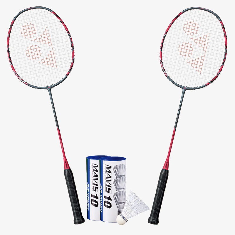 Includes two Yonex badminton racquets and two tube of Yonex MAVIS 10 White shuttlecocks.