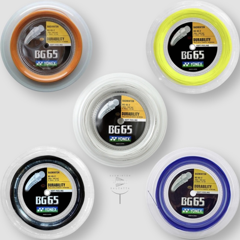 The 0.70mm specially braided fibre increases string abrasion durability. The BG65's all-round performance makes it the choice of the world's top playersSPECSMore InformationColor(s)Yellow, Orange, Black, White, Amber, Lavender, Violet, Royal Blue, Turquois