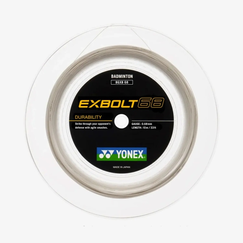 Brought to you by @CK YewBrought to you by the @Badminton ServeYonex Exbolt 68 200m Badminton String (White)While EXBOLT 63 focuses on speed and 65 on control, EXBOLT 68 prioritizes power. It features FORGED FIBER technology for durability and repulsion, w