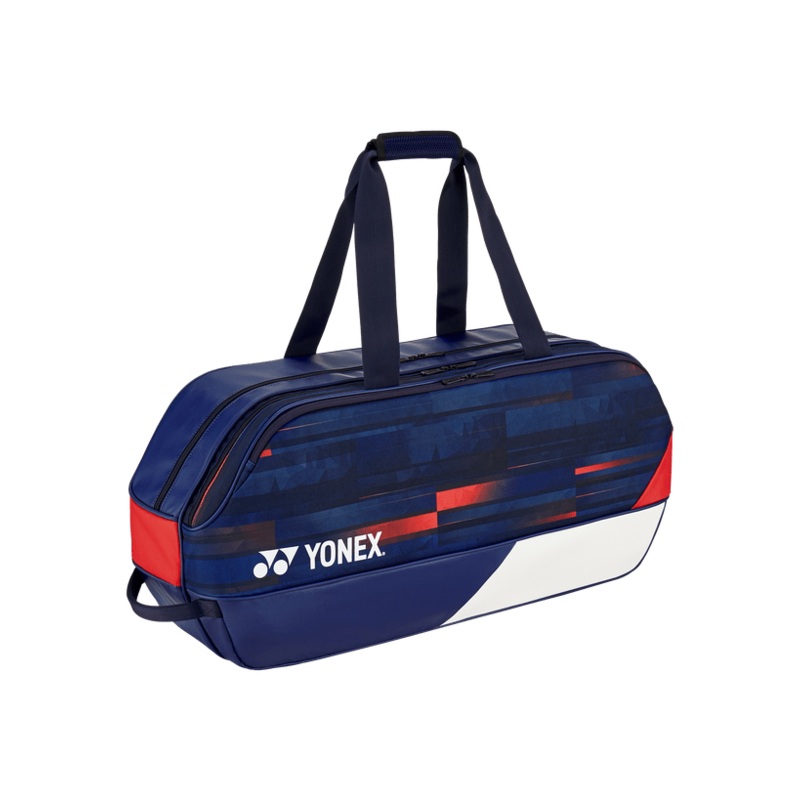 LIMITED PRO TOURNAMENT BAGZIPPER_YKKSUSTAINABILITYMade with more than 70% recycled polyester.SPECSColor(s)White / Navy / RedSize (LxWxH)75 x 20 x 33cmItem CodeBA31PA
