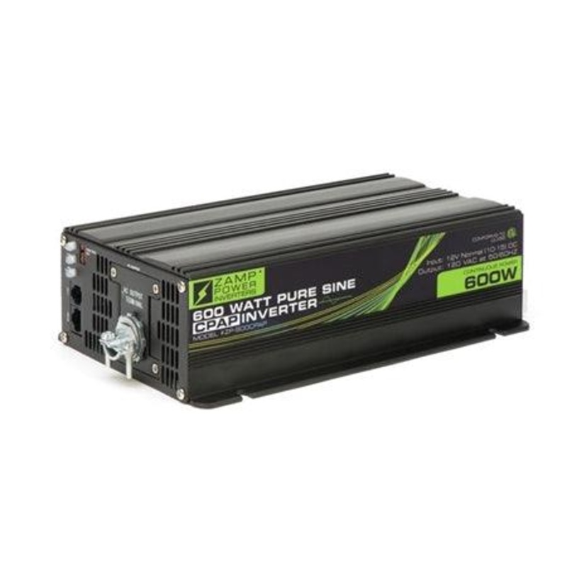 The Zamp Solar ZP-600-CPAP600W CPAP Pure Sine-Wave Inverterconverts DC to AC power and is used specifically for CPAP machines, which help people breath at night and get a proper nights sleep. The major difference with this inverter is the lack of AC plugs,